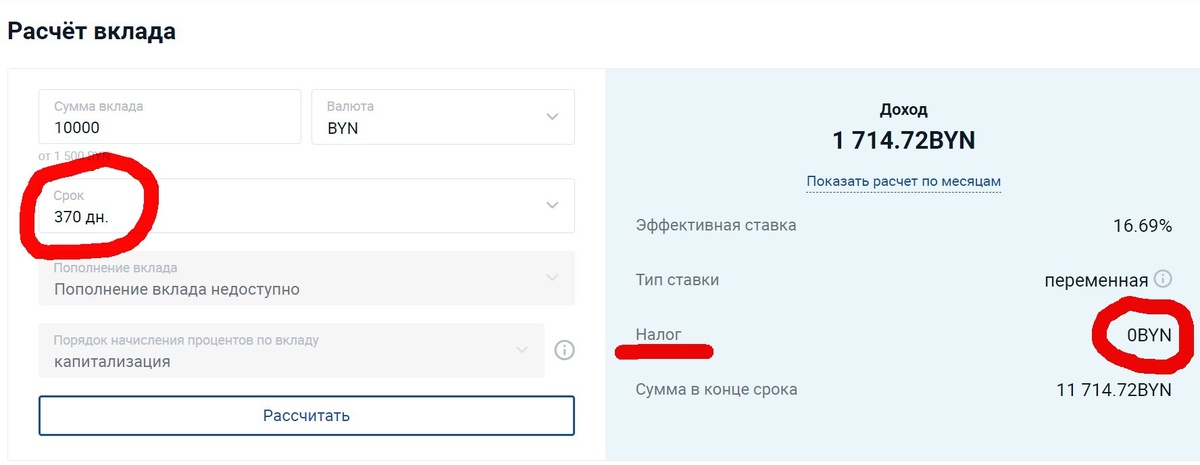 Если вклад в белорусских рублях до года, то капитализированные проценты облагаются налогом.